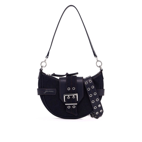 Ganni Ladies Shoulder Bag. SKU: A6137_642. Color: Dark Navy (Blue). Ganni Bucky Denim Small Bag. 100% Recycled Cotton.