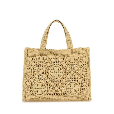 Tory Burch Ladies Tote. SKU: 169137_254. Color: Natural. Tory Burch t Monogram Tote Bag. Body : 100% Raffia; Trim : 100% Cow Leather; Lining : 100% Cotton.