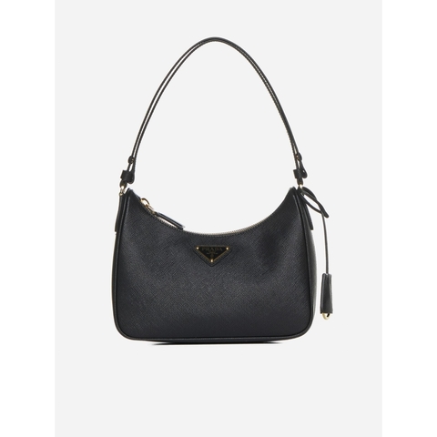 Prada Ladies Tote. SKU: 1BC204 NZV F0632 NERO 1. Prada Re-edition Saffiano Leather Mini Bag. Prada's black Saffiano leather Re-Edition mini bag featuring a top handle, zip fastening, front triangle logo plaque, detachable key ring charm, jacquard lining with all-over logo motif and gold-tone metal hardware. Composition: 100% calfskin