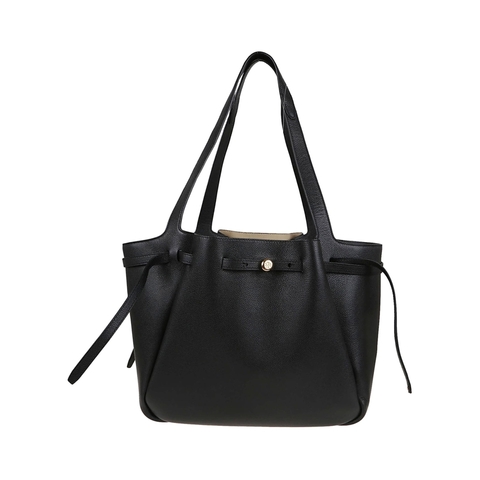 Tory Burch Ladies Tote. SKU: 163388.ROMY 001. Color: Black. Tory Burch Romy Pebbled Tote. Romy shopping bag made of fine hammered leather by TORY BURCH. Closure with magnetic buttons and strap with button closure; internal pendant pocket with zip; long removable shoulder strap. Features a thin belt that defines its soft curves and movement.