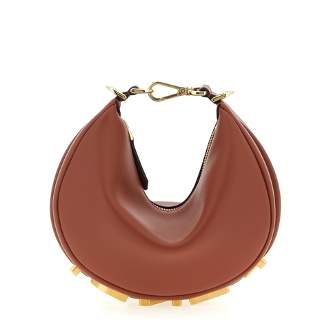 Fendi Ladies Tote. SKU: 8BS081A5DYF1TW4. Color: Brown. Fendigraphy Mini Handbag. Fendigraphy' mini handbag in calf leather, antiqued effect metal lettering logo on the bottom of the bag, top zip closure, hook and snap hook to be used as a handle, adjustable and removable shoulder strap. Composition: 100% calfskin leather (Bos Taurus).