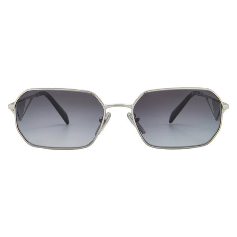Prada Sunglasses. Series number: PR A51S. Color code: 1BC90A. Shape: Geometric. Lens Width: 58 mm. Lens Bridge: 17 mm. Arm Length: 140 mm. 100% UV protection. Non-Polarized. Frame Material: Metal. Frame Color: Silver. Lenses Type: Grey Gradient. Rim Style: Full-Rim. UPC/EAN code: 8056262346495. Prada Grey Gradient Geometric Ladies Sunglasses PR A51S 1BC90A 58.<br/><br/>Manufacturer's Packaging Included. Packaging Size And Color May Vary.