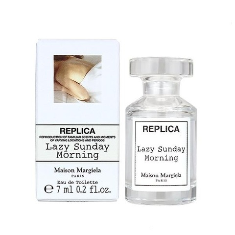 Launch year: 2013. Fragrance Family: Floral Woody. Top notes: Aldehydes, Lily-of-the-valley, Pear. Heart notes: Rose, Iris, Orange blossom. Base notes: White musk, Ambrette (musk mallow), Indonesian patchouli leaf. Design house: Maison Margiela. Design house category: fashion. Scent name: Replica Lazy Sunday Morning. Gender: Unisex. Category: Fragrance. SubType: EDT. Size: 0.23 oz. Barcode: 3614273326919. Maison Margiela Unisex Replica Lazy Sunday Morning EDT 0.23 oz Fragrances 3614273326919. <br/><br/> This item is only valid for shipment in the Contiguous United States & Canada.