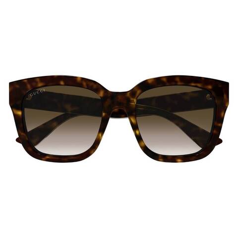 Gucci Brown Gradient Square Ladies Sunglasses GG1338S 003 54. Features: 100% UV protection, non-polarized lenses, acetate frame, Havana frame color, brown gradient lens type, square shape, lens width 54 mm, lens bridge 19 mm, arm length 140 mm, full-rim rim style, UPC/EAN code 889652412900, manufacturer's packaging included, packaging size and color may vary.