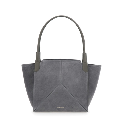 Victoria Beckham Ladies Tote. SKU: B325AAC006914A. Color: Grey. Victoria Beckham Victoria Small Grey Tote Bag With Embossed Logo Lettering On The Front In Suede Woman. Tote bag Grey Two top handles Open top Embossed logo lettering on the front Suede Dimensions: 32x33x13 cm. Composition: 100% Calf