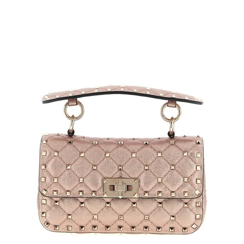 Valentino Garavani Ladies Shoulder Bag. SKU: W2B0123IEWGF9. Color: Pink. Size: W 20 x H 12 x D 6 cm. Valentino Garavani Rockstud Spike Shoulder Bag. Small 'Rockstud Spike' shoulder bag in laminated nappa leather with all-over stud applications, flap closure and metal swivel, removable handle, removable chain shoulder strap. Composition: 100% lamb leather (Ovis aries)