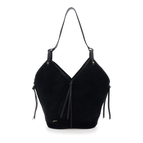Isabel Marant Ladies Shoulder Bag. SKU: PM0066FAC2C13M01BK. Color: Black. Isabel Marant Tampa Black Shoulder Bag With Single Shoulder Strap And Knot Detail In Suede Woman. Shoulder bag Black Single shoulder strap Knot detail Decorative stitching Suede Dimensions: 40x48x21 cm. Composition: 100% Calf