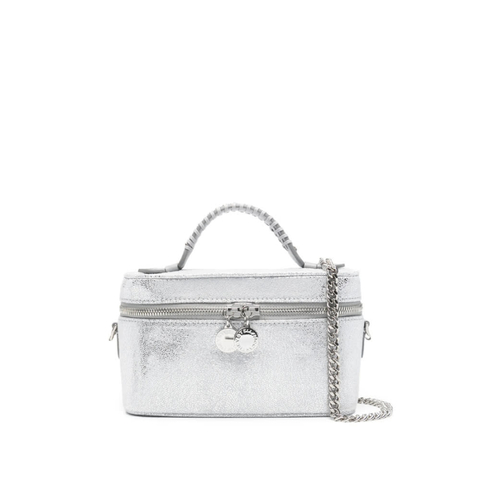 Stella Mccartney Ladies Travel Bag. SKU: 7P0070 WP0301 8101. Color: Silver. Stella Mccartney Bag. silver metallic effect braided top handle chain shoulder strap zip top fastening disc charm detail
