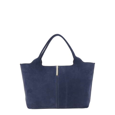 Tods Ladies Tote. SKU: XBWEBRA0250XBLUU604. Color: Blu. TodS Ebr Blue Tote Bag With Logo Plaque On The Front And Contrasting Stitching In Suede Woman. Tote bag Blue Two top handles Logo plaque on the front Magnetic closure Contrasting stitching Gold tone metalware Suede Dimensions: 42x27x13 cm. Composition:
