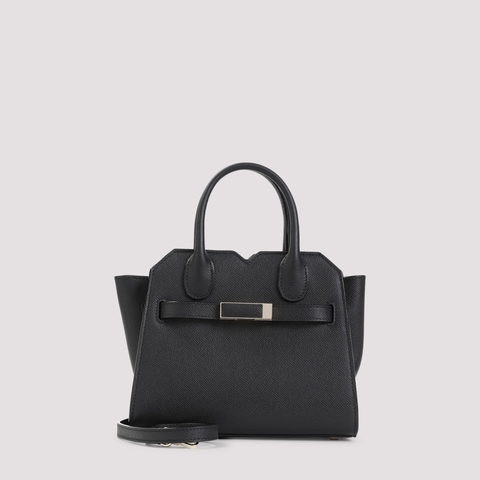 Valextra Ladies Shoulder Bag. SKU: WBMI0005010LOC99 NN. Color: Black. Size: W:21cm H:17cm D:11,5cm. Valextra Milano Micro Bag. Valextra Black Calf Leather Milano Micro Bag. Pure black calf leather bag, top handles, front leather strap with silver-tone metallic buckle, adjustable and detachable shoulder strap.