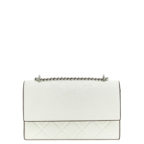 Tory Burch Ladies Crossbody. SKU: 167757100. Color: White. Tory Burch Fleming Small Crossbody Bag. 'Fleming small' leather crossbody bag, flap with embossed logo, stitching effect pattern, sliding chain shoulder strap. Composition: 100% goat leather