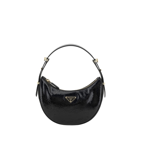 Prada Ladies Shoulder Bag. SKU: 1BC194VOOO2DNT F0002. Size: W 22. 5 x H 18. 5 x D 6 cm. Prada Shoulder Bag. The leather shoulder bag by prada combines essentiality and character thanks to a patent leather design with an elegant shiny effect. featuring a top zipper closure and an adjustable rigid flat handle, it offers a practical and well-organized interior compartment. completing the design is the iconic triangular enameled plaque on the front, an instantly recognizable symbol of prada style. Composition: 100% % Calf Leather Bos Taurus