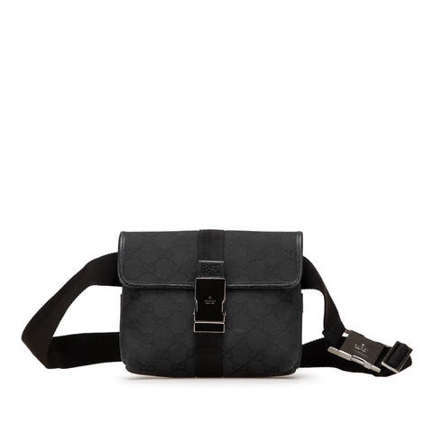 This belt bag features a canvas body with leather trim, an adjustable flat waist strap, a flap with buckle closure, and an interior zip pocket. Gucci Unisex Crossbody. SKU: 131236 001998. Color: Black. Size: 2 x 5 x 6. Gucci - GG Canvas Belt Bag 131236 001998.