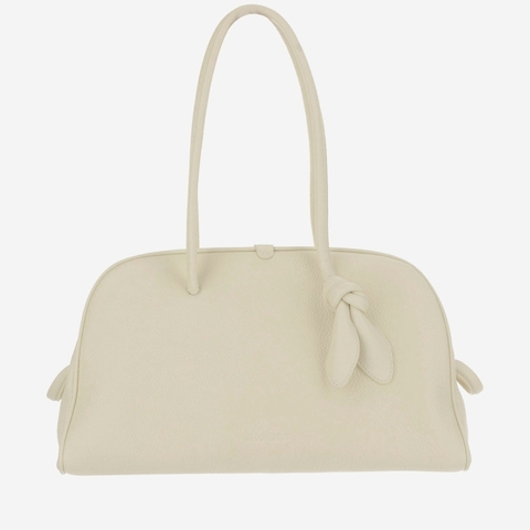 Jacquemus Ladies Shoulder Bag. SKU: BAU00417AC03A03115. Color: Ivory. Size: Width: 39 cmHeight: 21 cmDepth: 17 cm. Jacquemus Tourism Bag. Bag made of calfskin leather Two top handles with bow detail Top zip closure Single compartment Ivory Made in Italy Composition: 100% calfskin leather