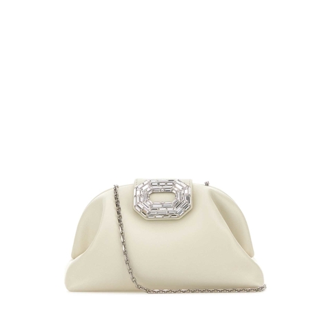 Amina Muaddi Ladies Clutch. SKU: CAMELIA ALMSILHAR. Color: Almond/Silver. Size: Width: 21 cm Height: 13 cm Depth: 7 cm Shoulder st. Amina Muaddi Ivory Nappa Leather Camelia Clutch. Ivory Nappa Leather Camelia Clutch from Amina Muaddi