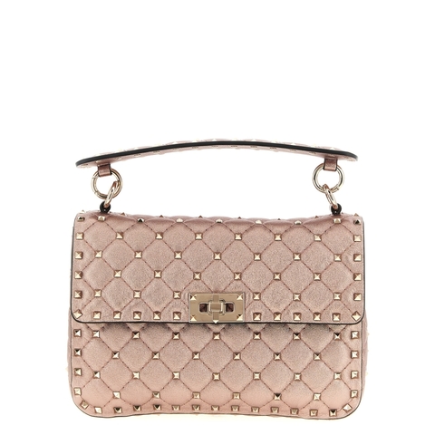 Valentino Garavani Ladies Shoulder Bag. SKU: W2B0122IEWGF9. Color: Pink. Size: W 23 x H 16 x D 6. 5 cm. Valentino Garavani Rockstud Spike Shoulder Bag. 'Rockstud Spike' shoulder bag in laminated nappa leather with all-over stud applications, flap closure and metal swivel, removable handle, removable chain shoulder strap. Composition: 100% lamb leather (Ovis aries)