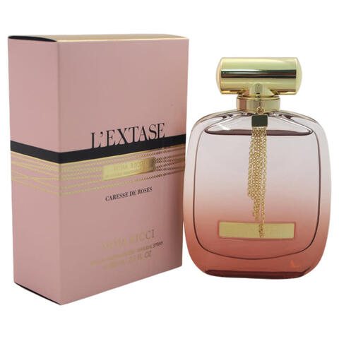 Launch year: 2016. Fragrance Family: Floral. Top notes: Bergamot, Pear. Heart notes: Bulgarian rose, Turkish rose, Peony, Raspberry, Lily-of-the-Valley. Base notes: Violet, White musk, Patchouli. Design house: Nina Ricci. Design house category: fashion. Design house country: France. Scent name: L'extase Caresse De Roses. Gender: Ladies. Category: Fragrance. SubType: EDP Spray. Size: 2.7 oz. Barcode: 3137370325949. Lextase Caresse De Roses / Nina Ricci EDP Legere Spray 2.7 oz (80 ml) (w). <br/><br/> This item is only valid for shipment in the Contiguous United States & Canada.