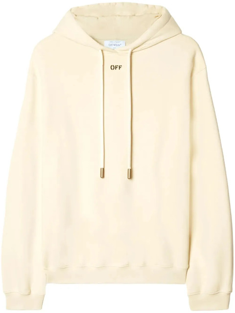 light beige drawstring hood front pouch pocket embroidered logo to the front drop shoulder