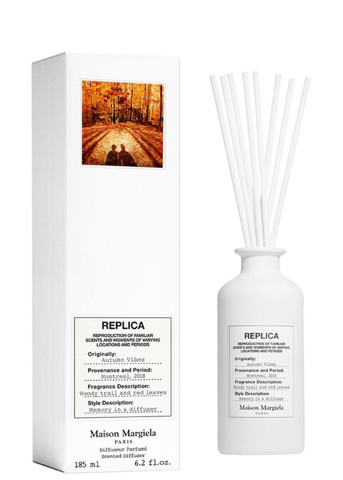 Launch year: 2021. Fragrance Family: Woody Spicy. Top notes: Cardamom, Pink pepper. Heart notes: Nutmeg, Maple, Carrot seeds. Base notes: Cedar, Moss. Design house: Maison Margiela. Design house category: fashion. Design house country: France. Scent name: Replica Autumn Vibes. Gender: Unisex. Category: Fragrance. SubType: Diffuser. Size: 6.2 oz. Barcode: 3614273922654. Maison Margiela Unisex Replica Autumn Vibes Diffuser 6.2 oz Fragrances 3614273922654. <br/><br/> This item is only valid for shipment in the Contiguous United States & Canada.