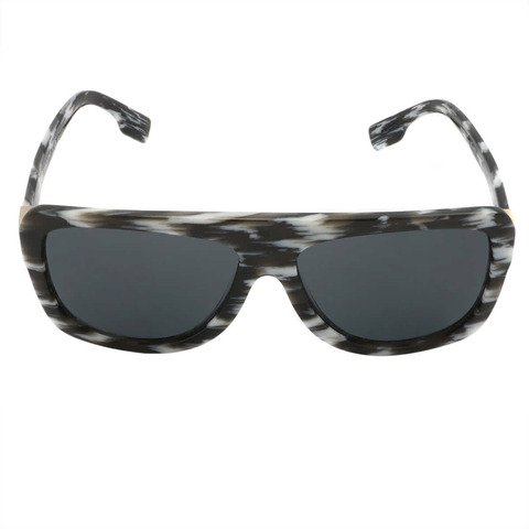 Burberry Sunglasses. Series Joan. Series number: BE4362. Color code: 397887. Shape: Square. Lens Width: 59 mm. Lens Bridge: 15 mm. Arm Length: 140 mm. 100% UV protection. Non-Polarized. Frame Material: Plastic. Frame Color: White/Black. Lenses Type: Dark Grey. Rim Style: Full-Rim. UPC/EAN code: 8056597595896. Burberry Joan Dark Grey Square Ladies Sunglasses BE4362 397887 59.