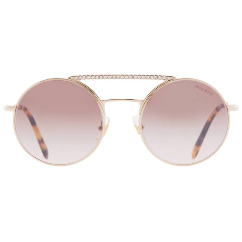 Miu Miu Sunglasses. Series number: MU 52VS. Color code: ZVNQZ9. Shape: Round. Lens Width: 50 mm. Lens Bridge: 20 mm. Arm Length: 140 mm. 100% UV protection. Non-Polarized. Frame Material: Metal. Frame Color: Pale Gold. Lenses Type: Brown Gradient Mirror Silver. Rim Style: Full-Rim. UPC/EAN code: 8056597141154. Miu Miu Brown Gradient Mirror Silver Round Ladies Sunglasses MU 52VS ZVNQZ9 50.<br/><br/>Manufacturer's Packaging Included. Packaging Size And Color May Vary.