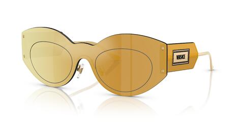 Versace Sunglasses. Series number: VE2276. Color code: 10027P. Shape: Shield. Lens Width: 144 mm. Lens Bridge: 0 mm. Arm Length: 140 mm. 100% UV protection. Non-Polarized. Frame Material: Metal. Frame Color: Gold. Lenses Type: Brown Mirror Gold. Rim Style: Rimless. UPC/EAN code: 8056262238738. Versace Brown Mirror Gold Shield Ladies Sunglasses VE2276 10027P 144.<br/><br/>Manufacturer's Packaging Included. Packaging Size And Color May Vary.