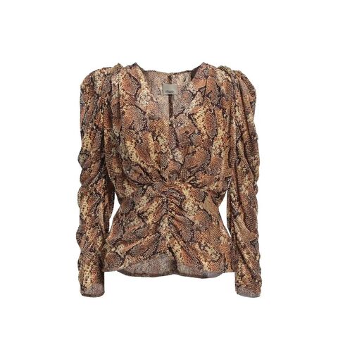 – Composition: 78% Silk 22% Viscose – Long sleeves – Dry clean – V-neckline – Puff sleeves – Python pattern – Ruched along the front – Made in Bulgaria – Gender: WOMEN –