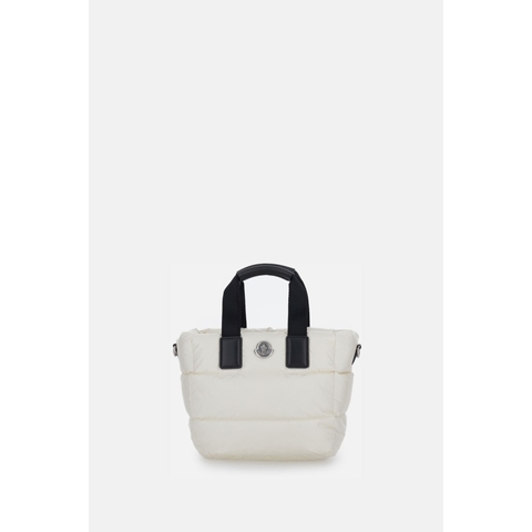 Moncler Ladies Shoulder Bag. SKU: 5D00009M6275051. Color: White. Moncler Caradoc Mini Bag. Made in Italy tote bag with adjustable and removable shoulder strap. Logo on the front, zip closure, lined interior. Color: white. Composition: 100% Polyamide.