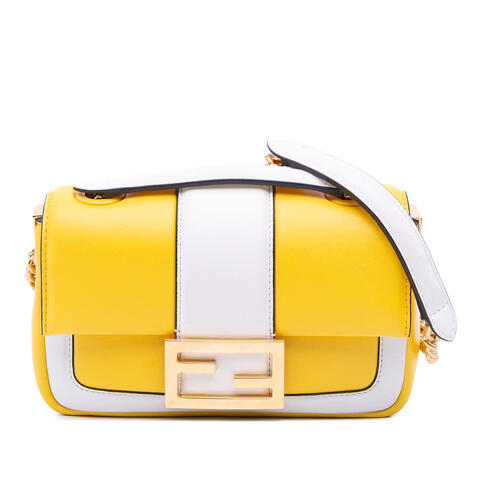 Item carefully selected and authenticated by a certified dealer for pre-owned luxury goods. The pre-owned Fendi Mini Bicolor Nappa Apolo Chain Baguette Shoulder Bag showcases the iconic Baguette silhouette in soft nappa leather, finished with elegant chain-link straps and leather shoulder guards for added comfort. A flap with magnetic snap closure and convenient interior card slots make this designer handbag both stylish and practical, offering luxury and contemporary style. <br /><br /> Designed for both fashion and functionality, this authentic Fendi shoulder bag is a versatile accessory that transitions effortlessly from day to evening. Its compact yet thoughtfully designed interior helps keep essentials organized, while the refined bicolor finish and signature craftsmanship make it a standout choice for anyone seeking a timeless luxury handbag that is perfect for everyday use. <br /><br /> Rating: B+. Condition for pre-owned: signs of wear are present and consistent with gentle prior use. Comments: Exterior Back Worn. Exterior Bottom Scratched. Lock Scratched. Exterior Corners Worn. Exterior Front Scratched. Exterior Handle Worn. Interior Lining Creased, Scratched. Practical Attachment Scratched. Item has an odor of Other. Inclusions: Dust Bag, Dust bag. Model: Mini Bicolor Nappa Apolo Chain Baguette Shoulder Bag. Serial: 8BS045 ACNZ 209 0189. Item #72CEHO17QG6SEFIA. This is a great opportunity to own an authentic handbag at a more accessible price.
