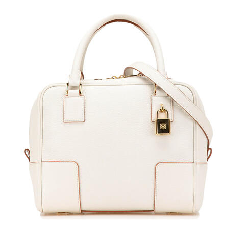 Item carefully selected and authenticated by a certified dealer for pre-owned luxury goods. The pre-owned Loewe Leather Amazona Square 19 satchel is a refined designer handbag crafted from premium leather, featuring rolled leather handles, a detachable flat leather shoulder strap, a secure top zip closure, and an interior zip pocket for added organization. With dimensions of 17 x 21 x 11 cm, a 9 cm handle drop, and a 54 cm shoulder drop, this compact Loewe satchel offers an elegant silhouette that blends luxury and contemporary style.<br /><br /> Designed for both fashion and functionality, this Loewe Amazona Square 19 is a versatile handbag that transitions effortlessly from day to evening wear. Its structured shape, practical interior pocket, and detachable shoulder strap make it easy to carry while keeping essentials organized, and the included padlock adds a signature finishing touch. Whether styled for casual outings or polished occasions, this designer satchel is perfect for everyday use.<br /><br /> Condition Rating: B+. Pre-owned condition with signs of wear, including worn exterior corners, scratched embellishment, staining on the exterior front, handle, and top, scratched interior pocket and lining, staining on the interior lining, scratched practical attachment, and scratched zipper. Inclusions: Padlock, Shoulder Strap. Model: Leather Amazona Square 19. Item# SFZVY9I0W0FTO23S. This is a great opportunity to own an authentic handbag at a more accessible price.