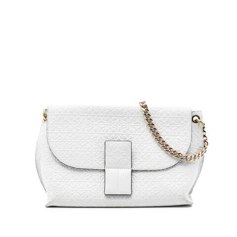 Item carefully selected and authenticated by a certified dealer for pre-owned luxury goods. The Loewe Leather Repeat Anagram Avenue Crossbody is a refined designer handbag crafted from embossed leather, featuring a chain link strap with a leather guard and a flap with a magnetic button closure. Its elegant silhouette and signature Repeat Anagram design make it a standout accessory for anyone seeking luxury and contemporary style.<br /><br /> Designed for both fashion and functionality, this pre-owned Loewe crossbody offers a compact yet practical size for daily essentials, measuring 17 x 24 x 10 cm with a 46 cm shoulder drop. The versatile crossbody design, premium leather construction, and timeless appeal make it an excellent choice for day-to-night wear, perfect for everyday use.<br /><br /> This authentic pre-owned Loewe handbag is model 521612, serial 521612, item #S244OQ470M61RW9T, and no longer comes with original accessories. Condition Rating: B+. Comments: Exterior back stained with other; exterior bottom stained with other; exterior corners worn and stained with other; exterior front stained with other; exterior handle creased, worn, and stained with other; interior lining stained with other; practical attachment scratched; exterior side worn and stained with other; exterior top worn and stained with other. This is a great opportunity to own an authentic handbag at a more accessible price.