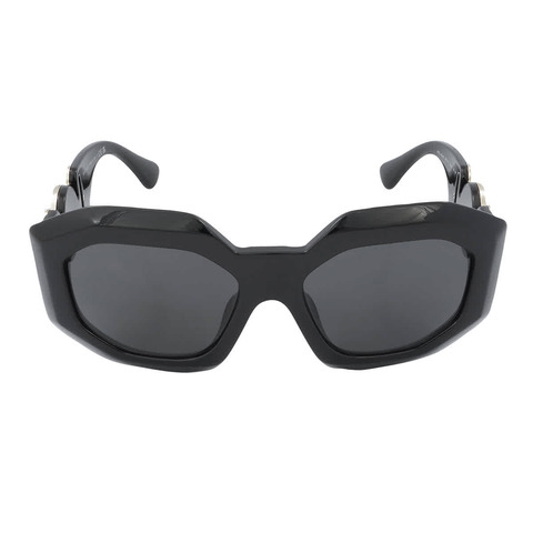Versace Sunglasses. Series number: VE4424U. Color code: GB1/87. Shape: Irregular. Lens Width: 56 mm. Lens Bridge: 18 mm. Arm Length: 145 mm. 100% UV protection. Non-Polarized. Frame Material: Plastic. Frame Color: Black. Lenses Type: Dark Gray. Rim Style: Full-Rim. UPC/EAN code: 8056597690096. Versace Dark Gray Irregular Ladies Sunglasses VE4424U GB1/8756.<br/><br/>Manufacturer's Packaging Included. Packaging Size And Color May Vary.