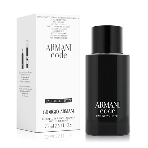 Launch year: 2023. Fragrance Family: Woody Aromatic. Top notes: Green Mandarin. Heart notes: Lavender. Base notes: Tonka Bean and Cedar. Design house: Giorgio Armani. Design house category: fashion. Design house country: Italy. Scent name: Armani Code. Gender: Mens. Category: Fragrance. SubType: EDT Spray. Size: 2.5 oz. Barcode: 3605520297939. Packaging may differ from the photo above. Giorgio Armani Mens Armani Code EDT Spray 2.5 oz (Tester) Fragrances 3605520297939. <br/><br/> This item is only valid for shipment in the Contiguous United States & Canada.