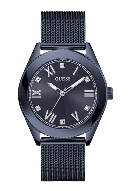 Black stainless steel case and bracelet. Black stainless steel bezel. Black dial with silver-tone hands and Roman numeral hour markers. Minute markers around the outer rim. Dial Type: digital. Luminescent hands and markers. Quartz movement. Scratch resistant mineral crystal. Round case shape, case size: 44 mm, case thickness: 12 mm. Band width: 20 mm. Fold over clasp with a safety release. Water resistant at 50 meters / 165 feet. Functions: hour, minute, second. Noble Series. Sport watch style. Guess Noble Quartz Digital Black Dial Mens Watch GW0495G3.