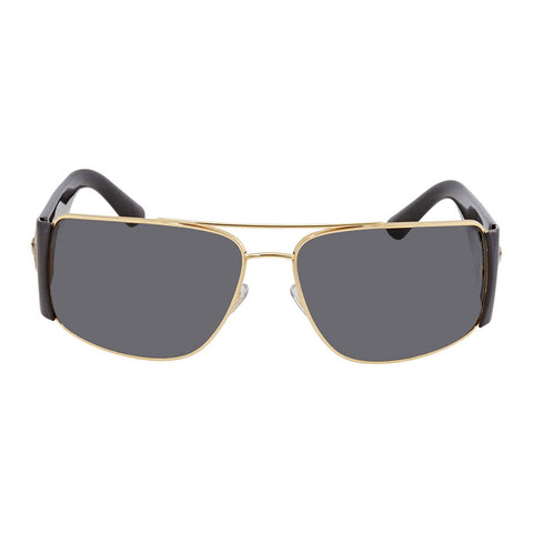 Versace Sunglasses. Series number: VE2163. Color code: 100287. Size: 63. Shape: Rectangular. Lens Width: 63 mm. Lens Bridge: 15 mm. Arm Length: 135 mm. 100% UV protection. Non-Polarized. Frame Material: Metal. Frame Color: Gold. Lenses Type: Grey. Rim Style: Full-Rim. UPC/EAN code: 8053672505382. Versace Grey Rectangular Mens Sunglasses VE2163 100287 63.<br/><br/>Manufacturer's Packaging Included. Packaging Size And Color May Vary.