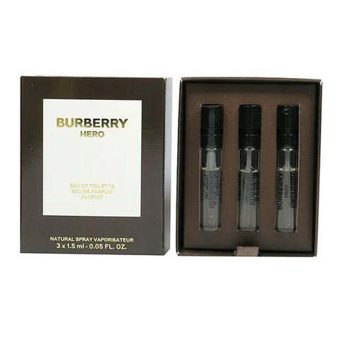 Design house: Burberry. Design house category: fashion. Design house country: United Kingdom. Gender: Mens. Category: Fragrance. Collection: Mini Set. SubType: Gift Set. Barcode: 3616304974564. VIALS SET 3 X 1.5ML (HERO EDP + HERO EDT + HERO PARFUM). Burberry Mens Mini Set Gift Set Fragrances 3616304974564. <br/><br/> This item is only valid for shipment in the Contiguous United States & Canada.