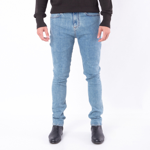 Burberry Mens Bottoms. Fashion category: Jeans & Denim. SKU: 8071551. Color: Mid Blue. Burberry Harloe Straight Hem Mid Rise Jeans. This jeans features a logo-debossed patch at the rear, concealed fly with button fastening, classic five-pocket design and a straight hem. 98% Cotton. 2% Elastane. Made in Italy.