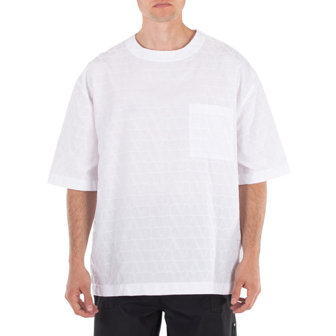 Valentino Mens Tops. Fashion category: T-Shirts & Henleys. SKU: 4V3CJI209VCKF9. Color: St T Ico White/White. Valentino Garavani Toile Iconographe Crewneck Short-Sleeved T-Shirt.This oversized classic cut top features a Toile Iconographe print, a round collar, wide sleeves up to the elbow, and a straight hem. A logo label is applied inside for added detail. 100% cotton. Made in Italy.