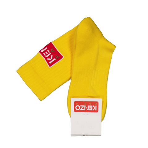 Kenzo Mens Undergarments. Fashion category: Socks. SKU: FC68SM130KSB-40. Color: Golden Yellow. Kenzo Paris Logo Two-Tone Socks. These cotton socks feature a bold two-tone Kenzo Paris logo on the back, combining comfort with a distinctive graphic touch. 72% cotton, 18% polyamide, 10% lycra. Made in Italy.