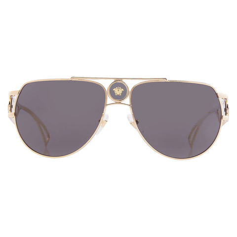 Versace Sunglasses. Series number: VE2225. Color code: 100287. Shape: Pilot. Lens Width: 60 mm. Lens Bridge: 15 mm. Arm Length: 140 mm. 100% UV protection. Non-Polarized. Frame Material: Metal. Frame Color: Gold. Lenses Type: Grey. Rim Style: Full-Rim. UPC/EAN code: 8056597220194. Versace Grey Pilot Mens Sunglasses VE2225 100287 60.<br/><br/>Manufacturer's Packaging Included. Packaging Size And Color May Vary.