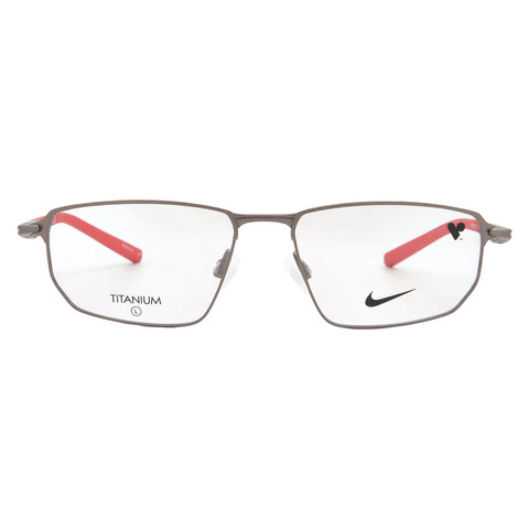 Nike Eyeglasses. Series number: NIKE 6067. Color code: 076. Shape: Rectangular. Lens Width: 55 mm. Lens Bridge: 16 mm. Arm Length: 145 mm. Frame Material: Metal. Frame Color: Satin Gunmetal/University Red. Lenses Type: Demo. Rim Style: Full-Rim. UPC/EAN code: 886895675154. Nike Demo Rectangular Mens Eyeglasses NIKE 6067 076 55.<br/><br/>Manufacturer's Packaging Included. Packaging Size And Color May Vary.