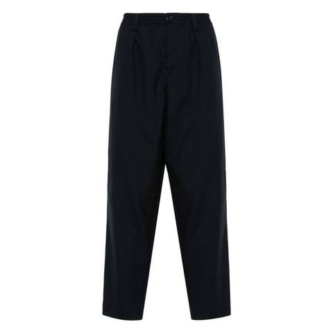 Marni Mens Bottoms. Fashion category: Pants & Leggings. SKU: PUMU0017U4-TW839-00B99. Color: Blublack. Marni Drawstring Waist Wool Trousers. Crafted from tropical wool, these pants feature a loose, mid-rise fit with front pleats for a relaxed yet refined silhouette. The design includes an elasticated drawstring waistband with belt loops, a horn button closure, slant side pockets, and buttoned welt pockets at the back for added functionality and style. 100% Virgin Wool.