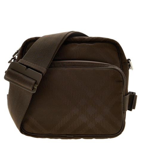 Burberry Mens Crossbody. SKU: 8092199. Material: Leather;Polyamide;Polyester. Color: Military. Size: H:20cm x W:20cm x D:10cm. Burberry Checked Jacquard Zipped Shoulder Bag. Canvas shoulder bag with leather trim, featuring a check pattern and patterned jacquard design. Equipped with silver-tone hardware, it includes an adjustable and detachable shoulder strap. The bag has a top zip fastening, a front zip-fastening pouch pocket, a rear slip pocket, and a spacious main compartment. 100% Calf Leather, 78% Polyamide, 22% Polyester, Lining: 100% Polyamide. Made in Italy.