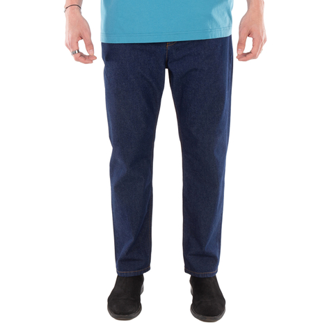 Maison Kitsune Mens Bottoms. Fashion category: Jeans & Denim. SKU: MM01107WW0081-INDI. Color: Blue. Maison Kitsune Straight-Leg Denim Jeans. Straight-cut denim jeans featuring a 5-pocket design with rivets, an engraved button closure with a hidden zipper, contrast topstitching. 100% Cotton. Made in Bulgaria.
