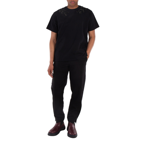 Burberry Mens Bottoms. Fashion category: Pants & Leggings. SKU: 8068682. Color: Black. Burberry Two-Tone Tapered Trousers. This trouser features a two-tone design with a fine knit and belt loops. It has a front button fastening, tapered legs, and cuff zips. 100% Wool. Made in Italy.