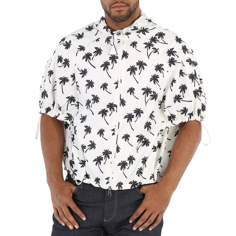 Moncler Mens Outerwear. Fashion category: Coats & Jackets. SKU: H10931A00096-595Z5-040. Color: Light Beige. Moncler Mens Light Beige Cezembre Hooded Windbreaker. A lightweight Cezembre windbreaker features a classic hood, two-way zip fastening, short puff sleeves, drawstring cuffs, an oversized fit and finished with an allover palm tree print. Polyamide 100%