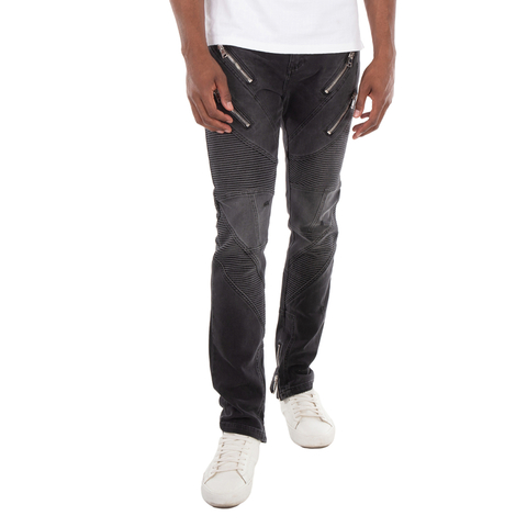 Balmain Faded Denim Biker Jeans, Waist Size 29'' - DH1MG110DE68-NOIR DELAVE (LPN390908)