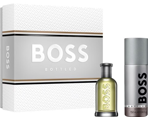 Launch year: 2015. Fragrance Family: Woody Spicy. Top notes: Apple, Bergamot blossom, Orange blossom. Heart notes: Clove, Cinnamon, Geranium. Base notes: Sandalwood, Cedarwood, Vetiver, Vanilla. Design house: Hugo Boss. Design house category: fashion. Design house country: Germany. Scent name: Boss Bottled. Gender: Mens. Category: Fragrance. SubType: Gift Set. Barcode: 3616305265142. Hugo Boss Boss Bottled (M) Set Edt 50Ml + Deo Spray 150Ml. Hugo Boss Mens Boss Bottled Gift Set Fragrances 3616305265142. <br/><br/> This item is only valid for shipment in the Contiguous United States & Canada.