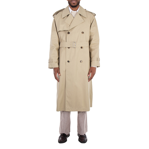 Burberry Mens Outerwear. Fashion category: Coats & Jackets. SKU: 8076715. Burberry Trench Castleford Coat. The Castleford trench coat, made from shower-resistant cotton gabardine and lined with a seasonal check, is tailored to an oversized fit with raglan sleeves and a longer hem and sleeves. It features a double-breasted button closure, epaulettes, a B-buckle belt, side welt pockets, belted cuffs, and a back button-through vent, with check lining and an undercollar for a signature touch. Designed for exaggerated proportions, the oversized fit is our loosest cut, so we recommend sizing down. It requires specialist dry cleaning, The outer and lining are made of 100% cotton, while the sleeve lining is 100% viscose. Made in Yorkshire, England.
