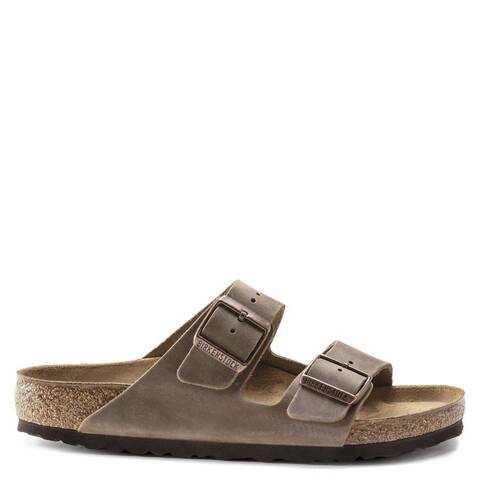 Birkenstock Mens Sandals. SKU: 352201-TABACCO BROWN. Color: Tabacco Brown. Birkenstock Arizona Oiled Leather Sandals. The Arizona sandal features an oiled leather upper, giving each pair a unique, individual finish. Two adjustable straps with metal pin buckles ensure a secure, customizable fit, while a suede-lined footbed provides all-day comfort. A flexible, lightweight EVA sole completes this iconic, versatile sandal. Made in Germany. <br/><br/><b>Please visit the brand website for sizing information.</b>